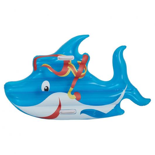Badmadrassen har en livfull hajdesign som gör den utmärkt för barn som vill ha något lite extra skojigt att leka med i poolen eller sjön.