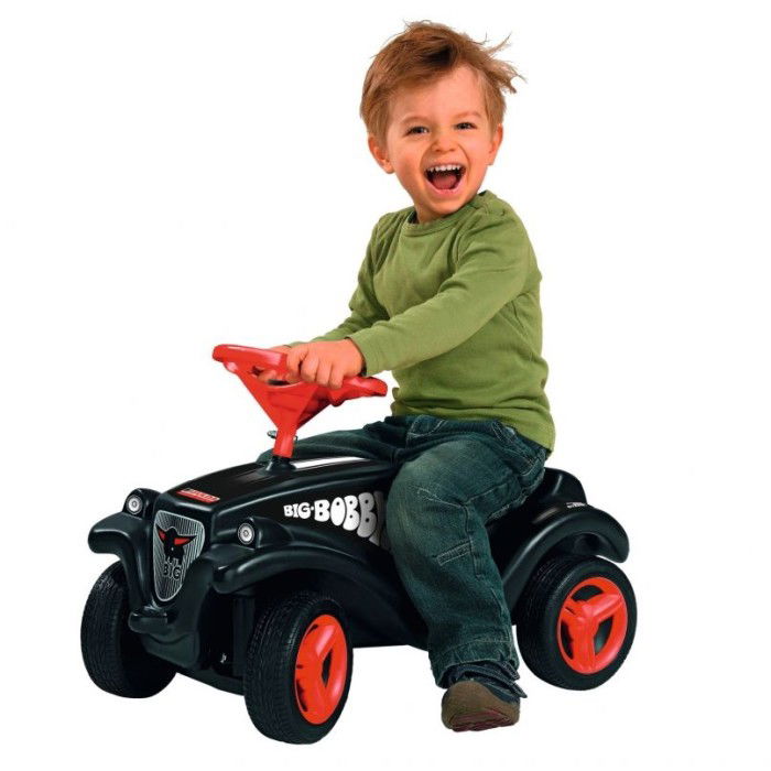 En ny, sportig, svart variation av den klassiska leksaksbilen med bredare hjul för extra stabilitet. BIG Bobby Cars är en klassiker bland barnleksaker. Med en Bobby Car kan barnen ta sig runt hemma på gården eller i huset på ett enkelt och underhållande sätt. En robust leksaksbil av plast som kommer hålla barnen och deras fantasi engagerade.