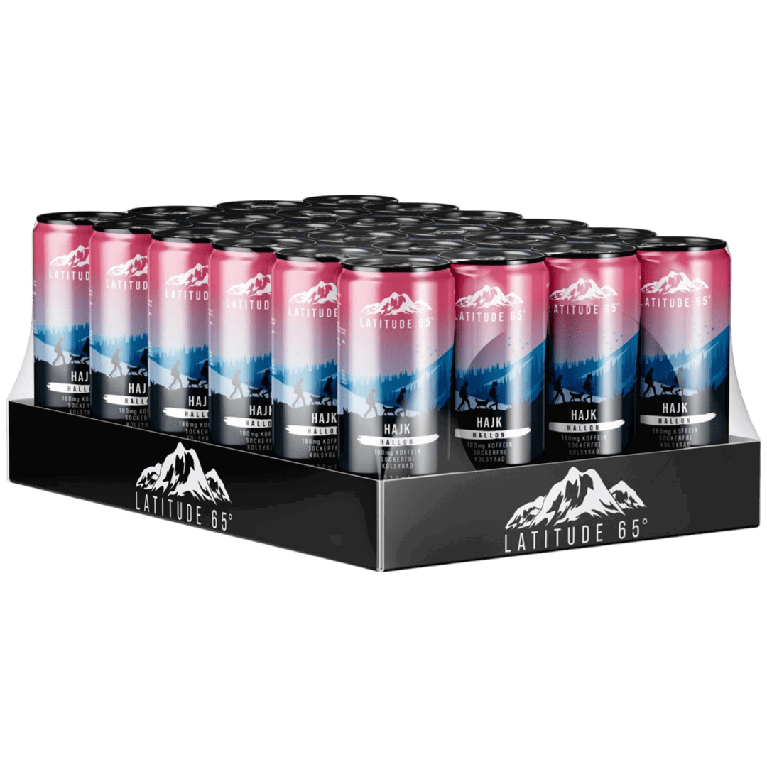 Latitude 65 Hajk är en energidryck framtagen i Norrland för att ge dig den bästa uppfriskande törstsläckaren, nu med smak av hallon.