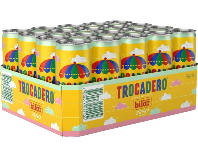 Den svenska klassikern från 1953. Trocadero är en kolsyrad läsk med fräsch smak av bland annat äpple och apelsin samt nu även med smak av gelehallon.
