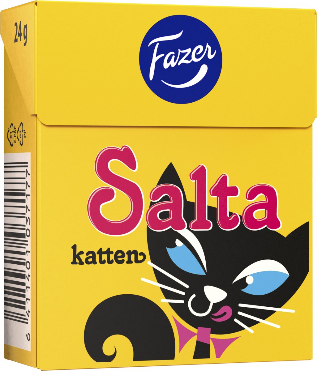 En tablettask med Salta Katten är en klassiker och storfavorit bland lakritsälskare. Perfekt för att dela med sig till andra salmiakfantaster.