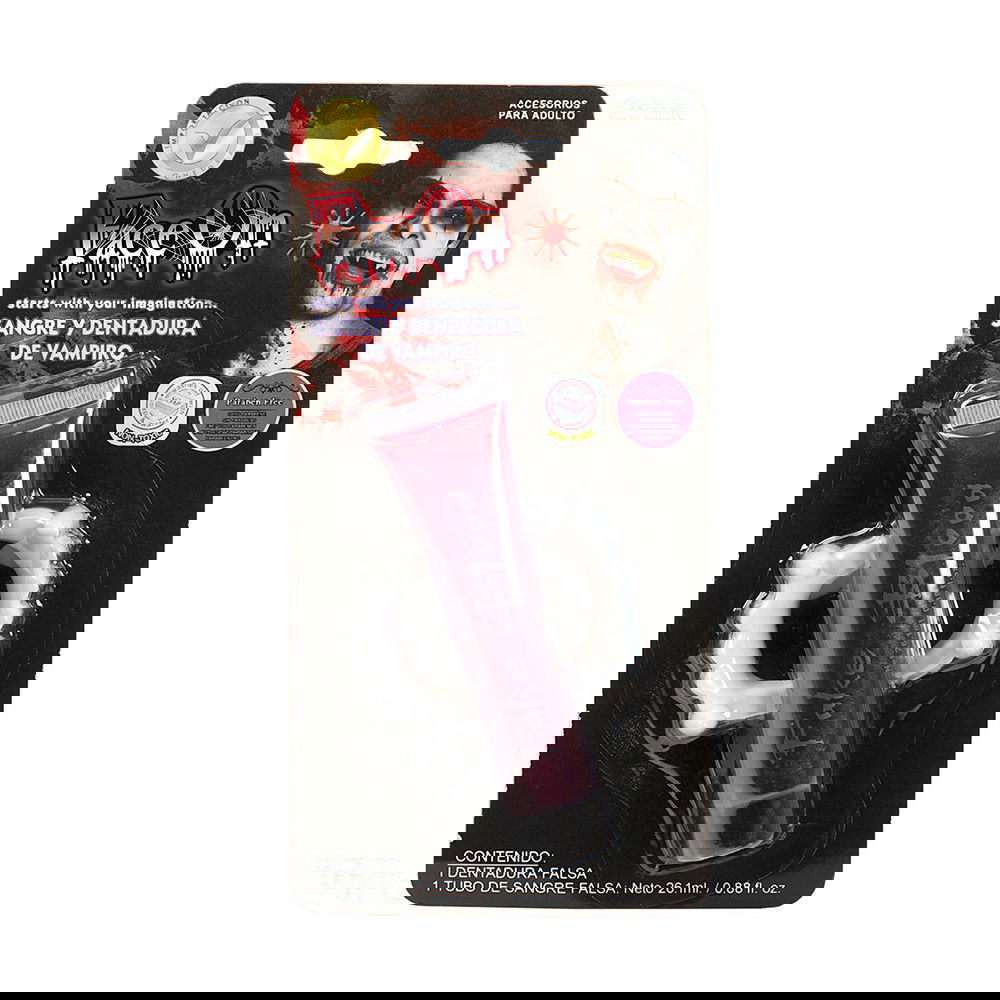 Om du vill gå på maskeradfesten som vampyr behöver du några riktiga huggtänder. Sätt in de här löständerna och använd det vattenbaserad fejkblodet så kommer du bli lika skräckinjagande som självaste greve Dracula.