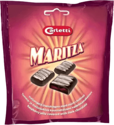Carletti Maritza är mjuk och söt hallongelé doppad i härlig mörk choklad. Perfekt för fruktälskare och gottegrisar!