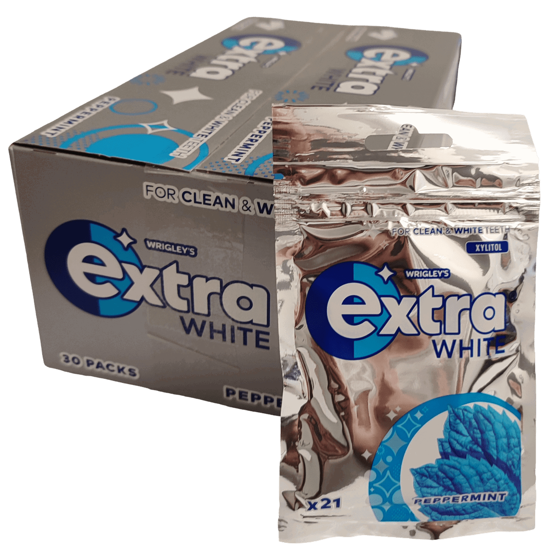 Extra White Peppermint har den uppfriskande smaken av pepparmint. Perfekt för att friska upp sig efter mellanmålet.