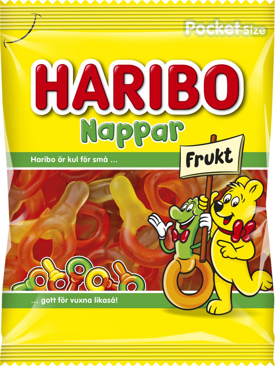 Haribo nappar är en av Sveriges storfavoriter. Med sina många olika smaker passande stora som små är det enkelt att förstå varför.