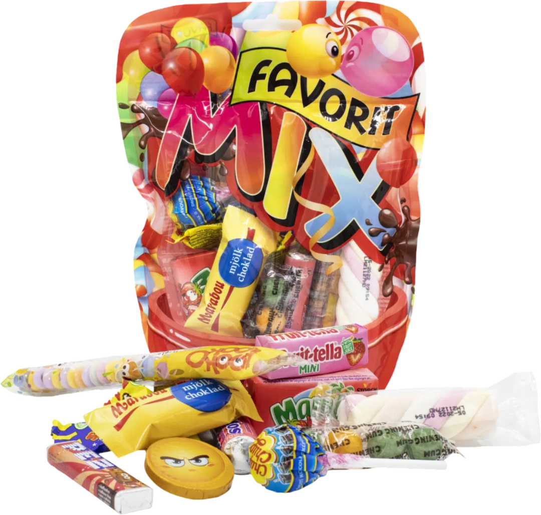 En påse med en blandning av populära godisar. Perfekt att lägga i presentpåsar, pris i fiskdammen eller till påsk, jul och halloween.