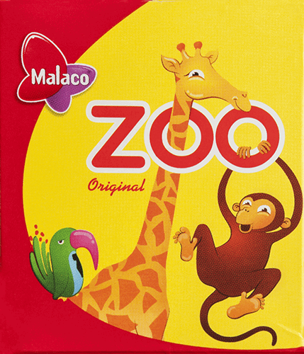 Malaco Zoo är ett av Sveriges mest kända godisvarumärken med sin fruktiga smak. Både innehållet och dess design med apan, giraffen och papegojan är sanna svenska klassiker i godishyllan. Små Zoo godisapor i ask. Godisasken innehåller 20 g. Malaco - Lördag hela veckan