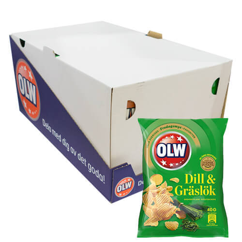 Det här storpacket innehåller 20 chipspåsar med smak av dill & gräslök på vardera 40 gram från OLW. Dill & Gräslök är en klassisk smak som går hem hos många och med 20 påsar är det enkelt att dela med sig av det goda.