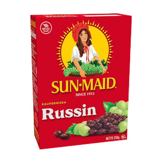 Sun-Maids russin är naturliga russin gjorda av endast vindruvor och solsken från Kalifornien. Russinen är tidlösa och har varit ett hälsosamt mellanmål för barn och vuxna sedan 1912. Förutom att vara ett välsmakande och hälsosamt mellanmål, är russin ett bra komplement till många snacks- och efterrättsrecept, särskilt inom bakning.