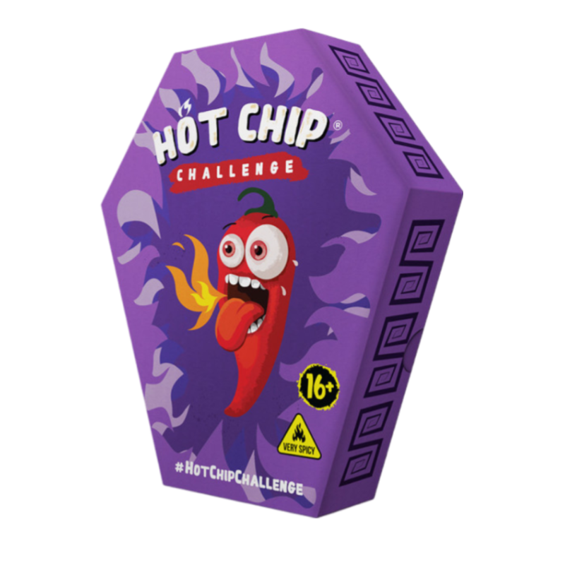 Hot Chips Challenge är den perfekta testen för din tolerans för hetta! Denna lilla kartong innehåller 3 gram chips med en intensiv chilismak som kommer att sätta dina smaklökar i brand. Varje tugga bjuder på en kraftfull och eldig sensation som utmanar dina smaklökar på riktigt. Åldersgräns på 16 år.