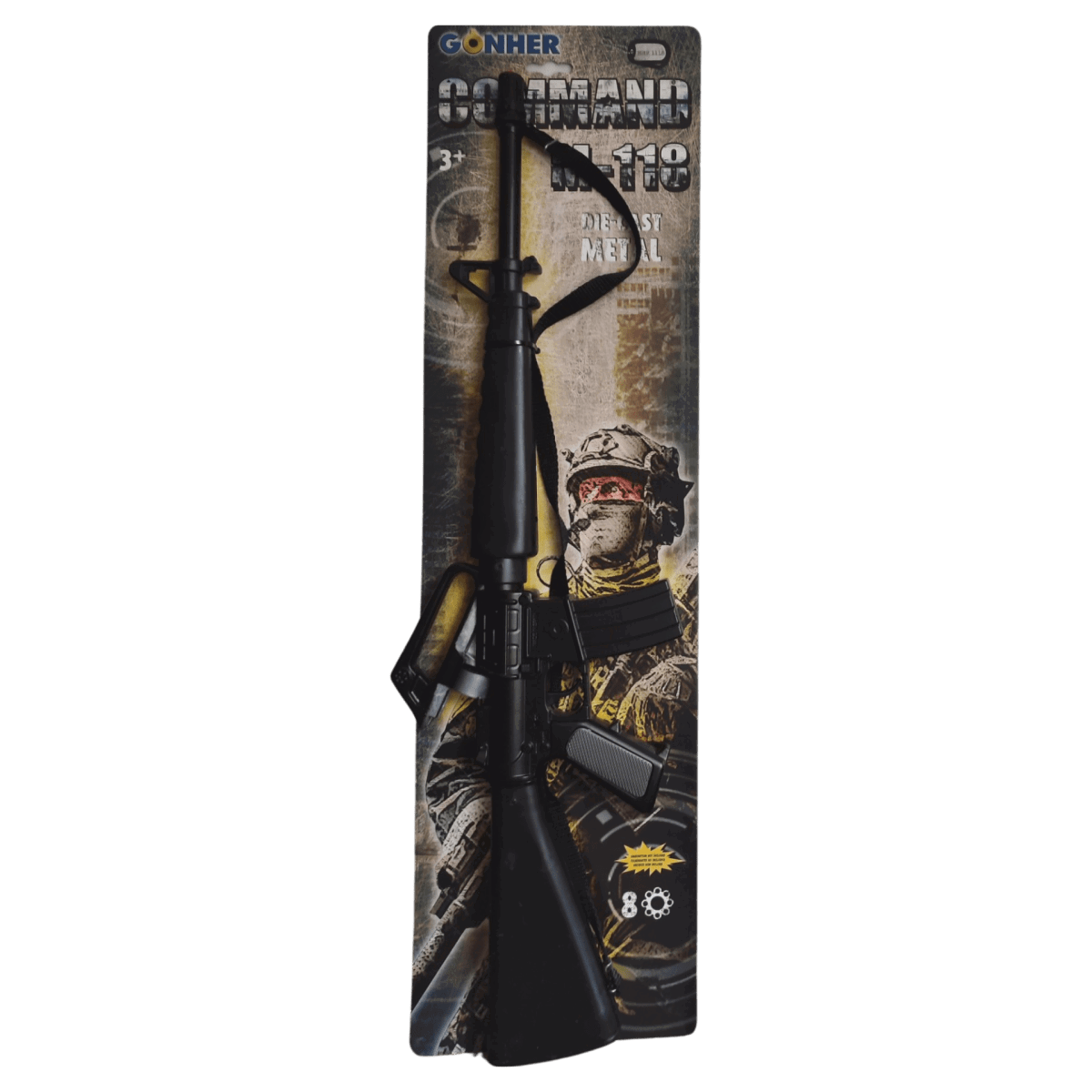 Ge leken en explosiv touch med detta actionfyllda knallpulvergevär från Gonher. Med Command M-118 kan ditt barn låtsas vara en modig soldat, redo för spännande uppdrag och äventyr. Detta lekknallpulver ger en autentisk ljud- och ljuseffekt när det avfyras och ger leken en extra dimension av realism.