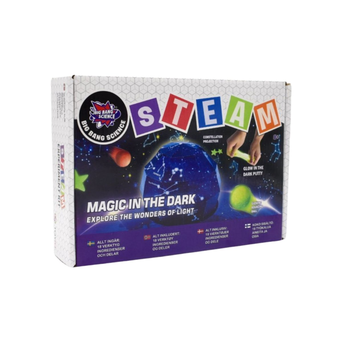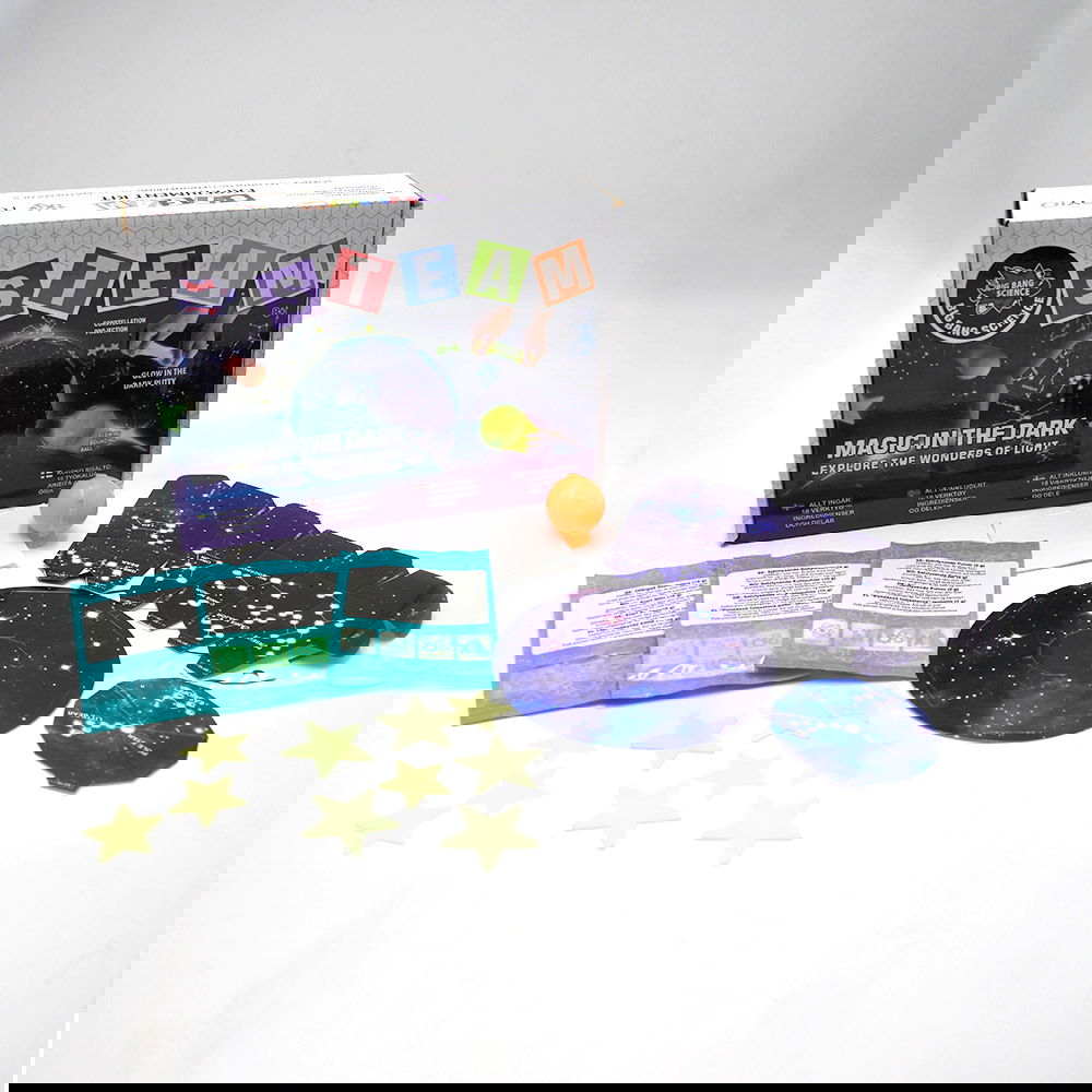 Låt barnen arbeta med olika experiment som lyser i mörker. I det här leksetet har barn möjligheten att göra egen självlysande studsboll och studslera. De kan även pyssla ihop lysande stjärntecken och en avbildning av vintergatan.