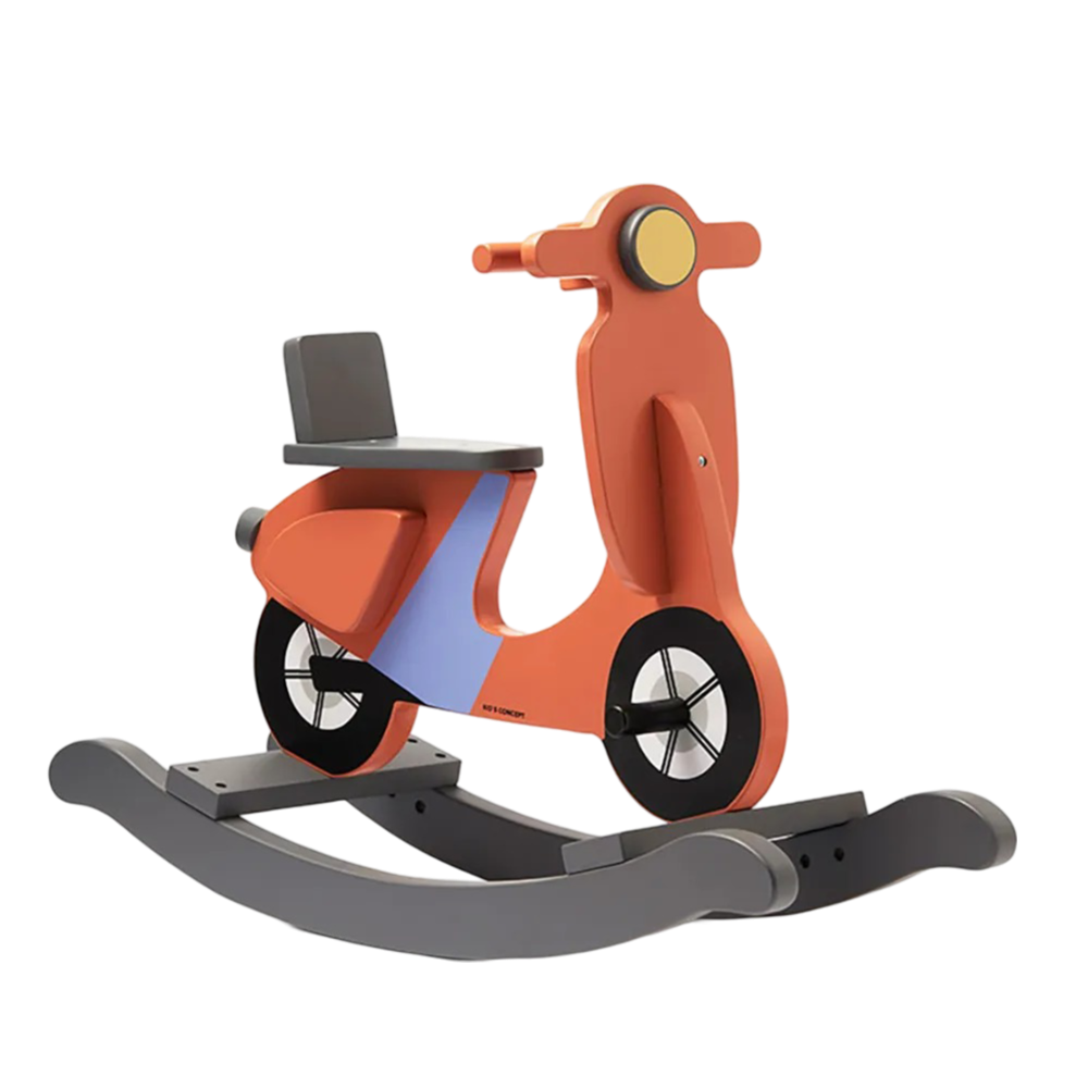 Snygg gungscooter i trä från Kids Concept för barn. Scootern har tippsäkra skenor och stadiga handtag att hålla sig fast i. Gungscootern passar lika bra stående i barnrummet som i hemmets övriga rum.