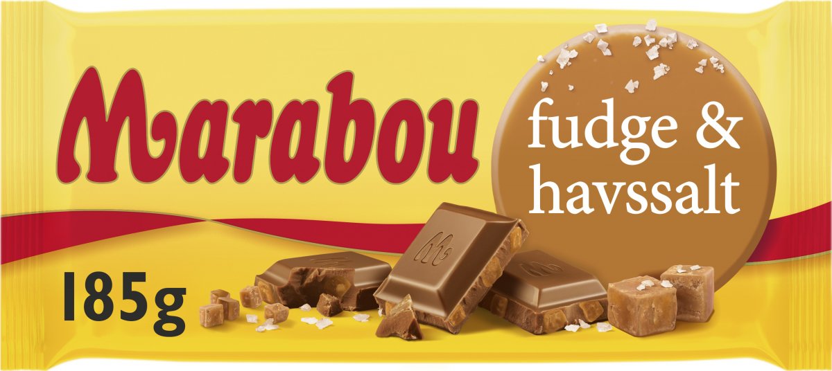 Marabou Fudge & Havssalt är Marabous mjölkchoklad med en kombination av den söta kola smaken av fudge och havets salta vågor. Ett utmärkt val om man inte kan bestämma sig för salt eller sött.