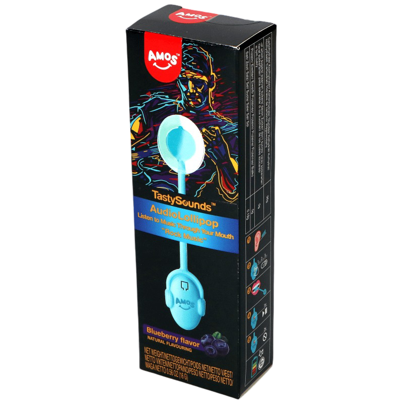 Den här innovativa audio-lollipopen använder benledningsteknik för att sända ljudvibrationer genom klubban och upp till dina öron medan du njuter av godiset – så du ”hör” musiken samtidigt som du smakar på smaken. Perfekt som present, för fest, eller som en rolig snackupplevelse för både barn och vuxna som vill prova något helt nytt.