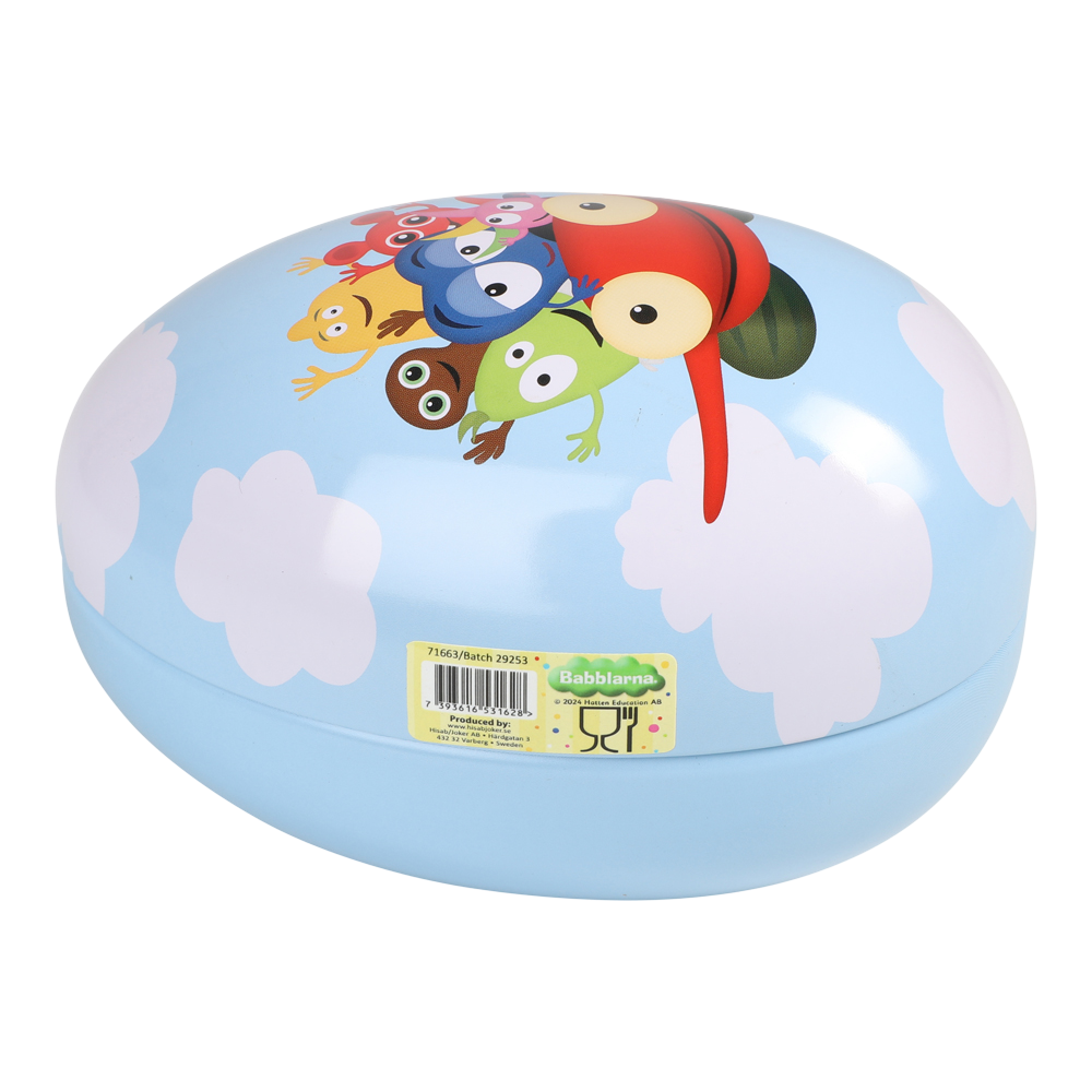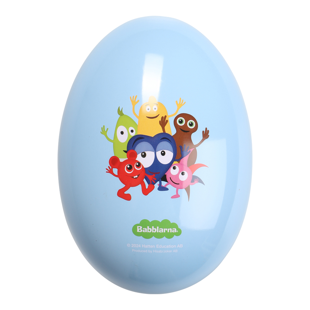 Påskägg i Plåt Babblarna är ett färgglatt och lekfullt påskägg med motiv från de populära Babblarna. Perfekt att fylla med godis eller små överraskningar till barnen! Tillverkat i hållbar plåt, vilket gör det återanvändbart år efter år. En rolig och charmig påskpresent för de små Babblarna-fansen!