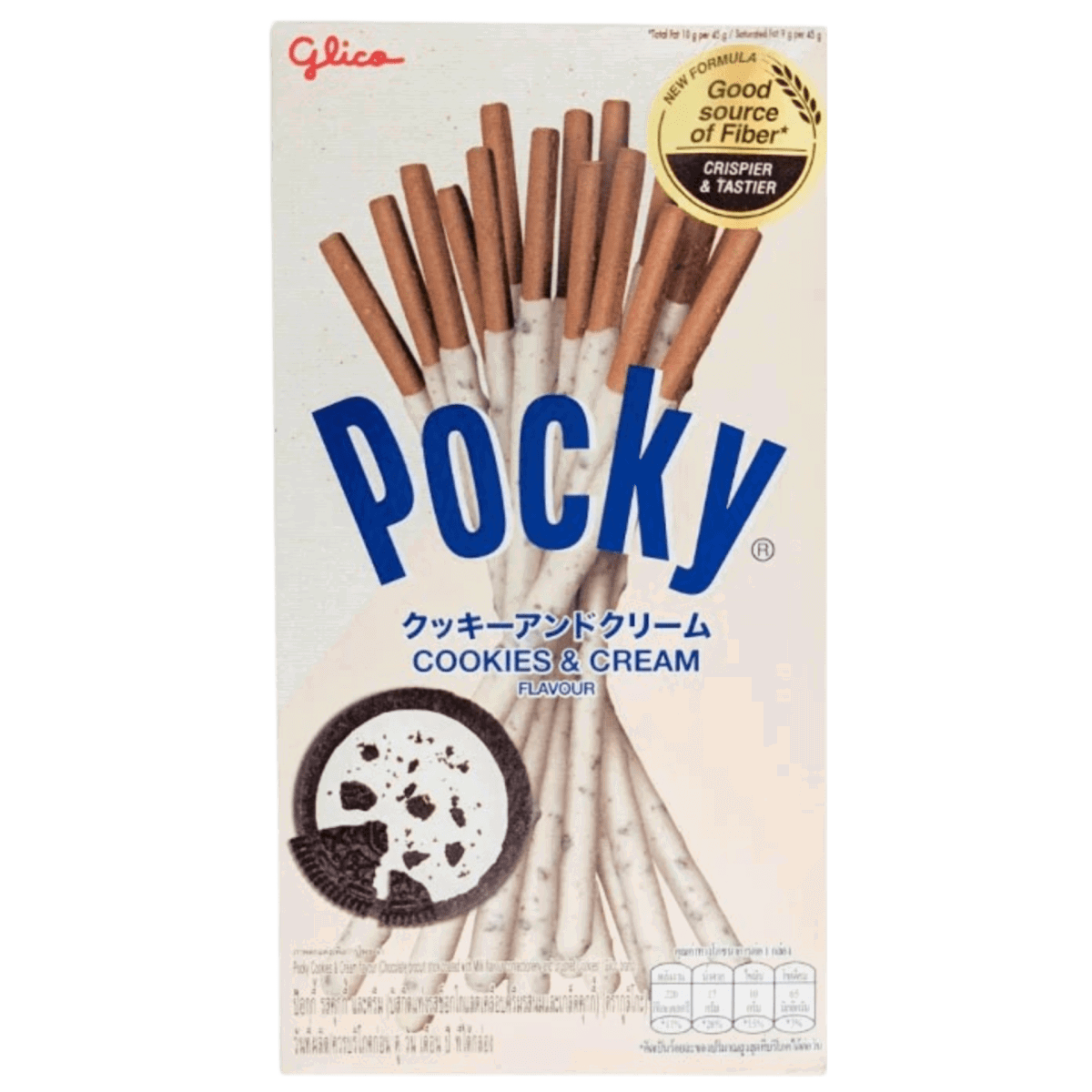 De här spröda pinnarna doppade i len mjölkchoklad med smak utav kakor och gräddsmak är det perfekta valet när sötsuget gör sig känt! I en praktisk förpackning på 45 gram är Pocky Chocholate Cookies & Cream ett utmärkt mellanmål eller filmkvällsgodis för både stora och små!
