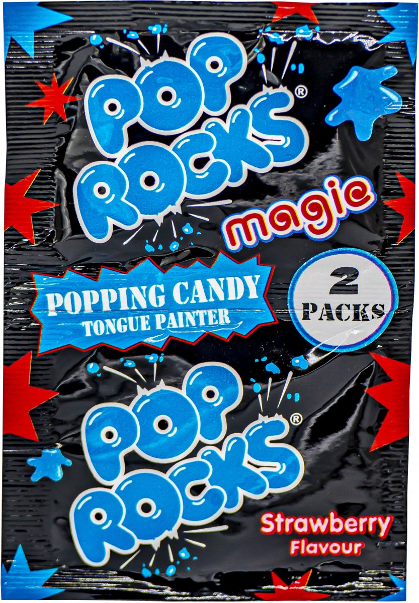 Pop Rocks Strawberry är ett knastrande godis med jordgubbssmak som smäller när det får kontakt med tungan.