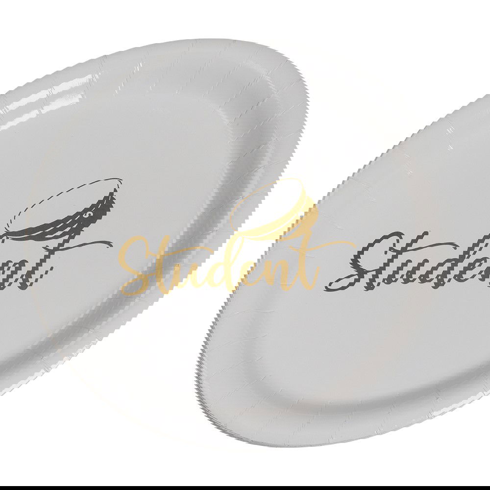 Papperstallrikarna kommer ett praktiskt 8-pack, vilket gör det enkelt att undvika en brist. Dessutom har tallrikarna en festlig design med studenttema som hjälper till att sätta stämningen