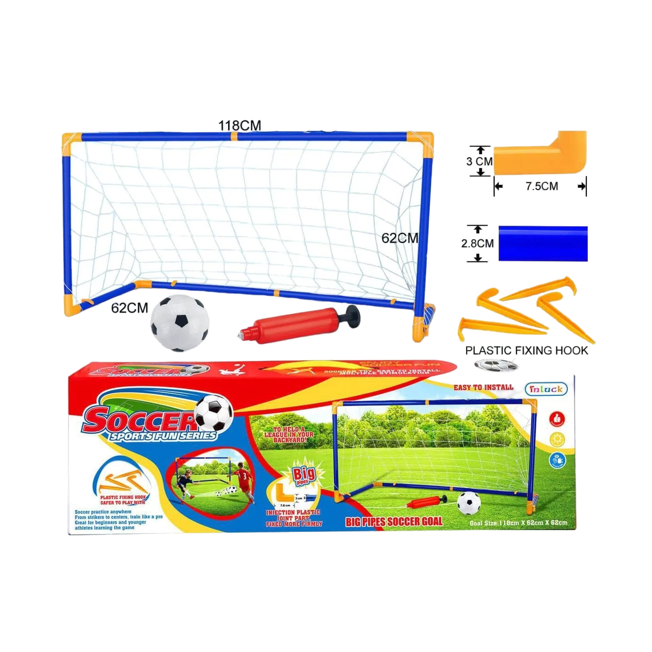 Detta fotbollsmål är skapat av plast och är perfekt för unga nybörjare. Lätt att ta med sig vare sig man spelar hemma på baksidan eller vill ta med sig till stranden.