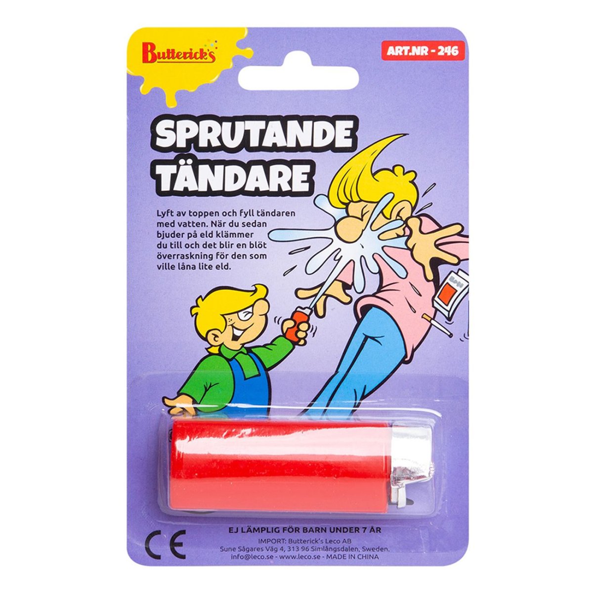 Har du en kompis eller familjemedlem som gillar att bolma på cigaretter? Då är den här vattensprutande tändaren det perfekta skämtredskapet. Fyll den med vatten och tryck på knappen så får offret en kallsup istället för en rykande cigaretter.
