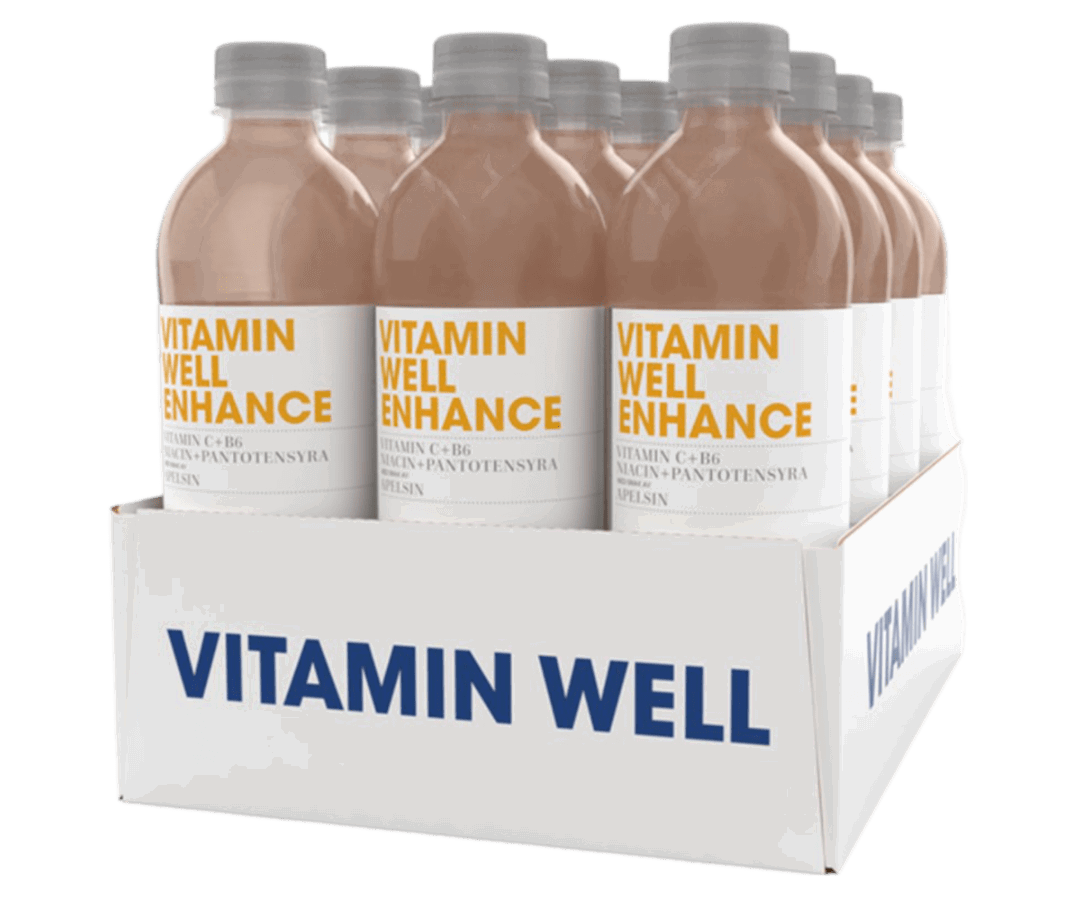 Vitamin Well Enhance är en upprfriskande vitamindryck med smak av apelsin som innehåller vitamin C, niacin och pantotensyra som minskar trötthet och utmattning, samt vitamin B6 som stöder energiomsättning och immunförsvaret. Vitamin C ökar dessutom järnupptaget. Vitamin Well är en vitaminberikad, lågkaloridryck utan kolsyra och konserveringsmedel, bäst serverad kyld.