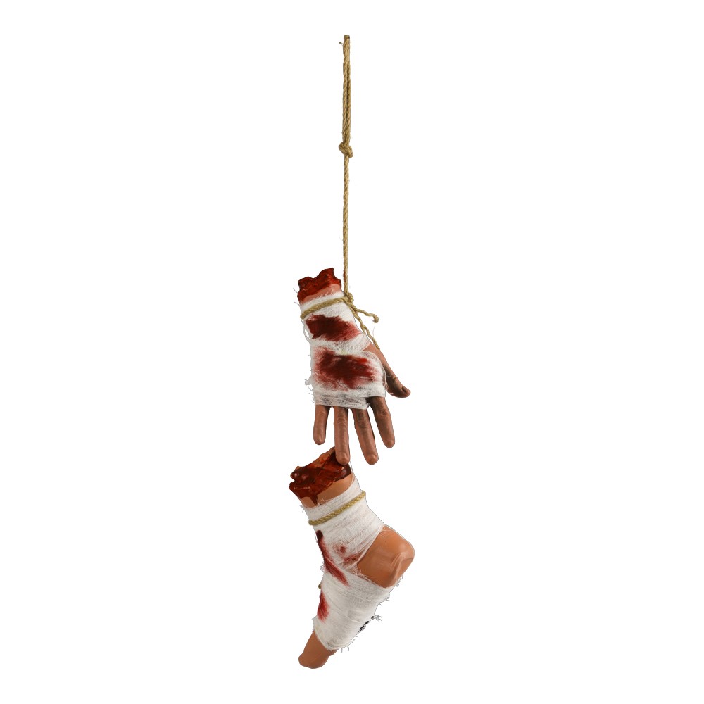 Kroppsdelar är inget som ofta väcker uppmärksamhet, så länge de sitter på rätt plats. Häng upp de här blodiga, avhuggna delarna i det medföljande repet så har du en makaber dekoration värdig en slasherfilm.